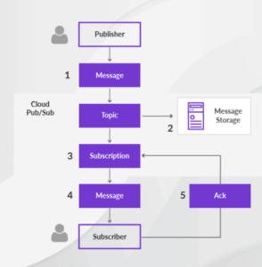 - Subscriptions: Subscriptions represent the connection point for receiving messages from a topic. Subscribers can have different configurations, such as pull or push subscriptions.