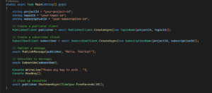 - Publishing Messages: With the client library, publish messages to topics from your .NET application. Messages can be simple strings or complex objects serialized to JSON.