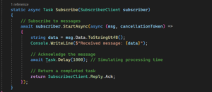 - Subscribing to Topics: Subscribe to topics to start receiving messages in your .NET application. You can configure subscriptions for pull or push delivery.
