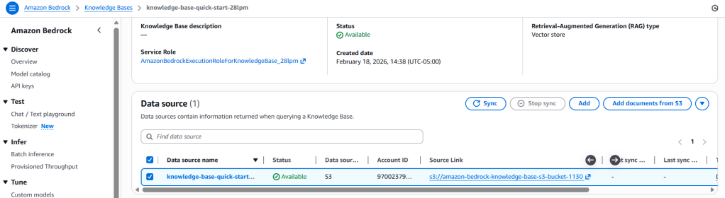 Now we have gone through the full implementation journey, i.e., setting up the S3 bucket & Knowledge Base, syncing documents, and testing Knowledge Base. Setting up a RAG workflow in Amazon Bedrock is doable, but it owes some friction in doing so. For instance, we have to navigate to different Amazon services (like S3, Vector DBs, Aurora PostgreSQL, etc.) before we can ask our first question from the RAG. However, once configured a RAG in Amazon Bedrock offers:
