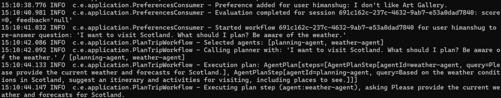 In the image above, we can notice that Akka Agentic AI application has updated the trip plan as per the User preferences and removed the “Art Gallery” recommendation.