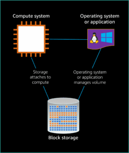 - Operating system (OS): The software that manages the computer and interacts with the block storage.