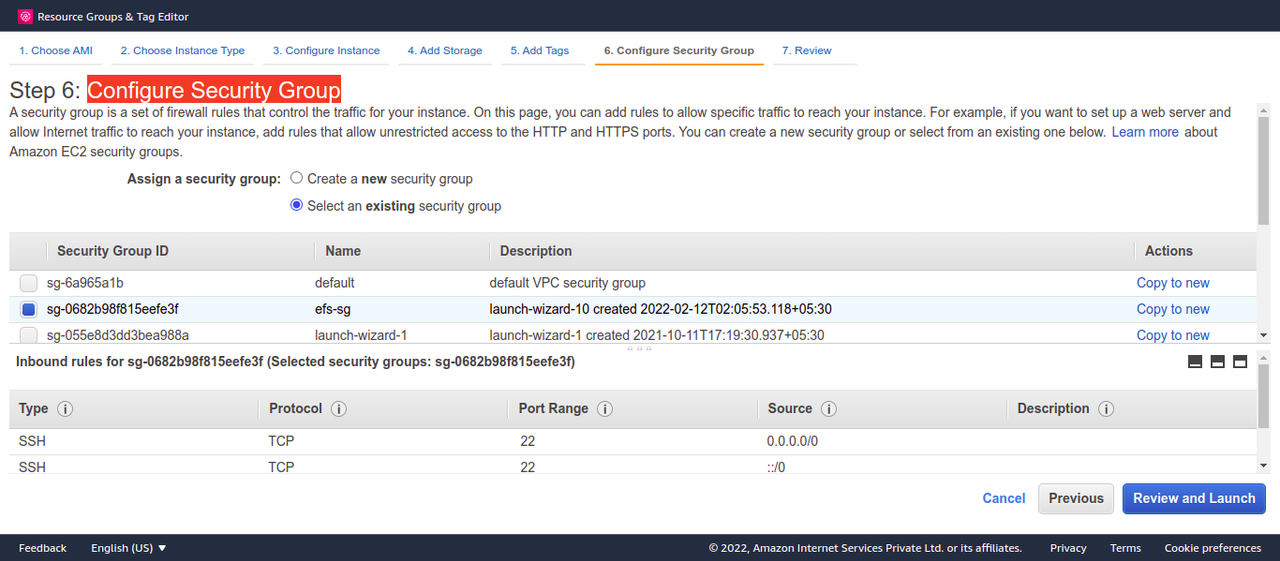 Step -2 Similarly create second instance and under Configure Security Group choose the security group that we have created before.