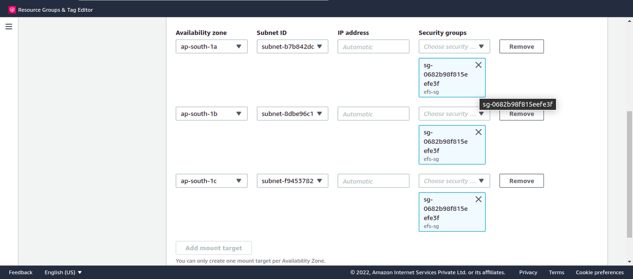 Setting up Amazon Elastic File System