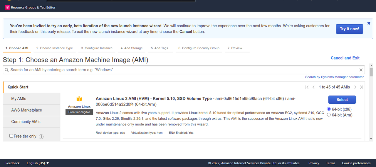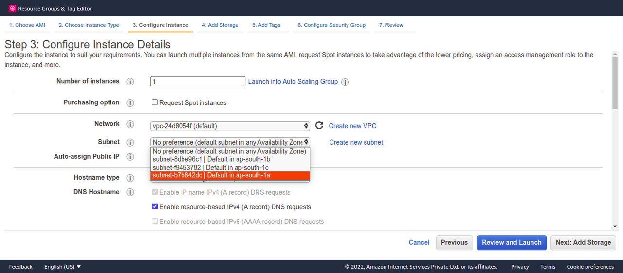 - Take subnet-1a for the first instance, and choose subnet-1b for second instance.
