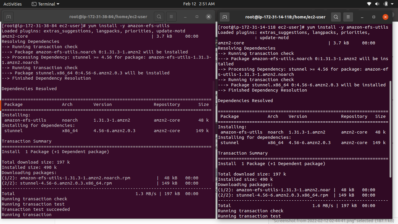 - Run yum install -y amazon-efs-utils to install utilities.