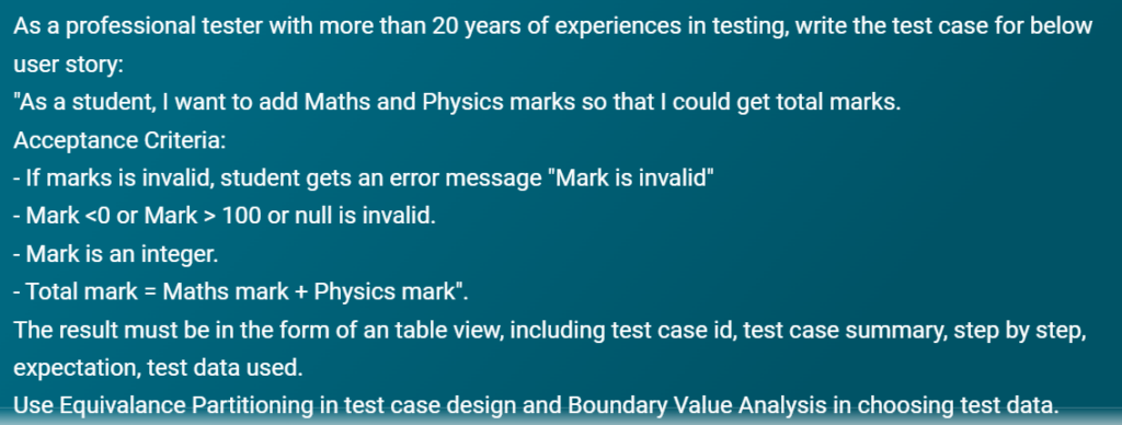 Currently, with the raise of AI in technology, there is a concern how AI can support manual testing? So in this post, I will use Bing Chat is built on GPT-4, a Large Language Model developed by OpenAI, a type of Generative AI to evaluate how it can support manual tester in creating test case.