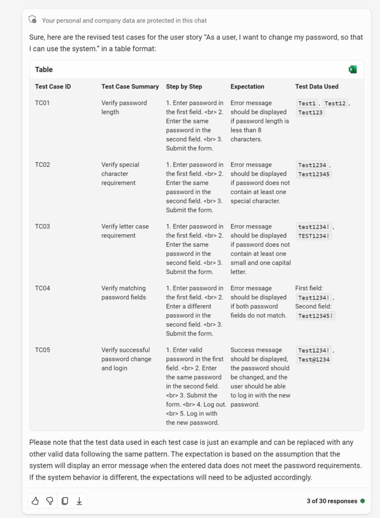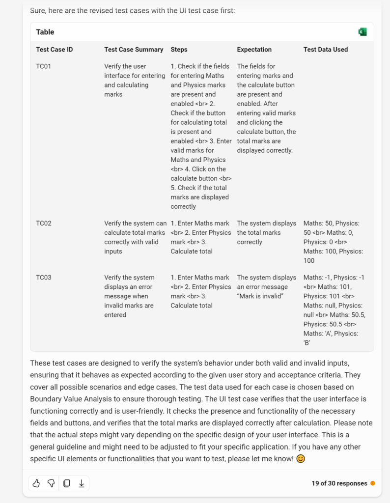 An Example of Using Bing Chat in Manual Test Case Creation