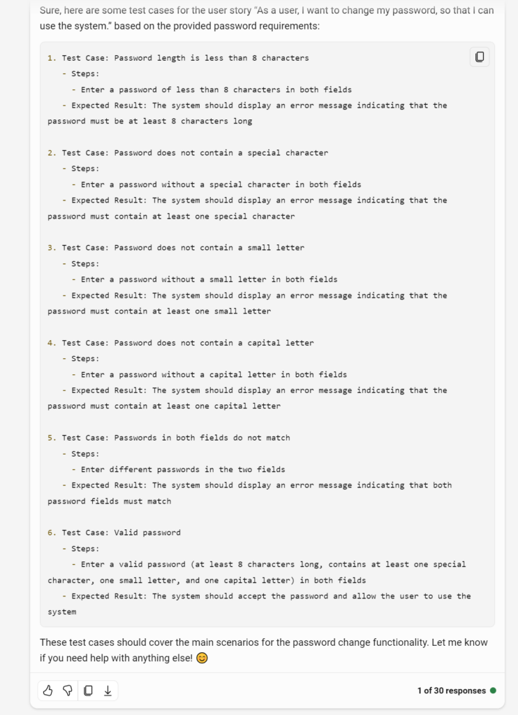 So, we will use Bing Chat to write test case and let’s examine how Generative AI could help in this case.