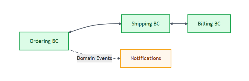 • Domain Events — meaningful business occurrences (e.g., OrderPlaced, PaymentFailed).