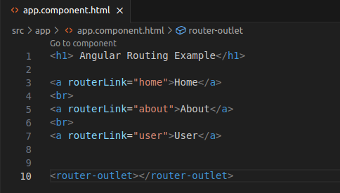 In this example, we have a navigation menu with links to our defined routes, and the <router-outlet></router-outlet> element will display the routed components.
