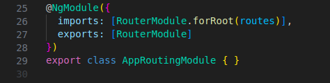 RouterModule.forRoot(routes)configuration inside theimportsarray of the@NgModuledecorator.