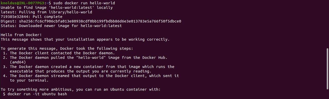 sudo docker run hello-world