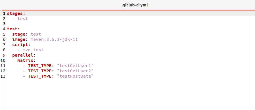 • In the above .gitlab-ci.yml file, we define a single stage called “test” that includes a job named “test.” The job uses the latest Maven Docker image, which includes Java and Maven installed.