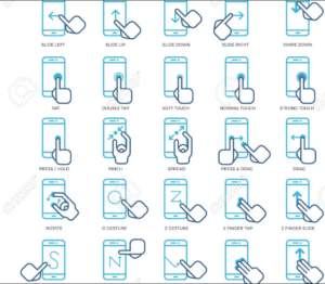 User may interact with the app by various physical actions called gestures. Tester needs to check what happens when each kind of interaction is done. Below are some common gestures: