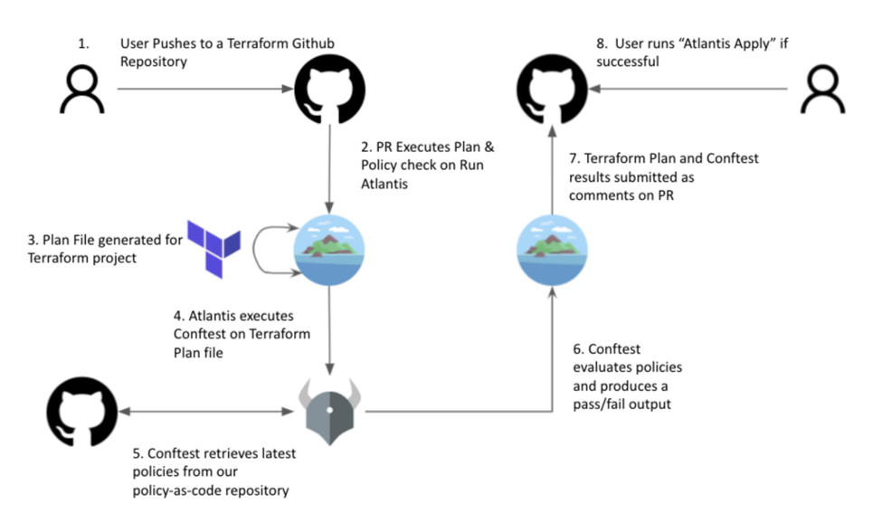 Atlantis acts like a remote Terraform operator. In practice, it performs the following actions: