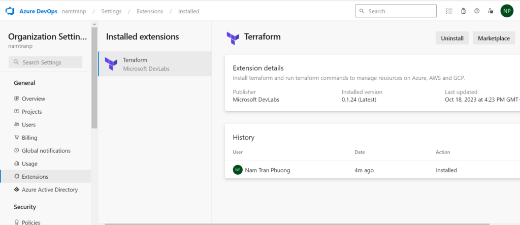 If you have already installed Terraform in Azure DevOps you can ignore this step. However, if you not, you need to install the extension from Market. Here are some steps you need to follow: