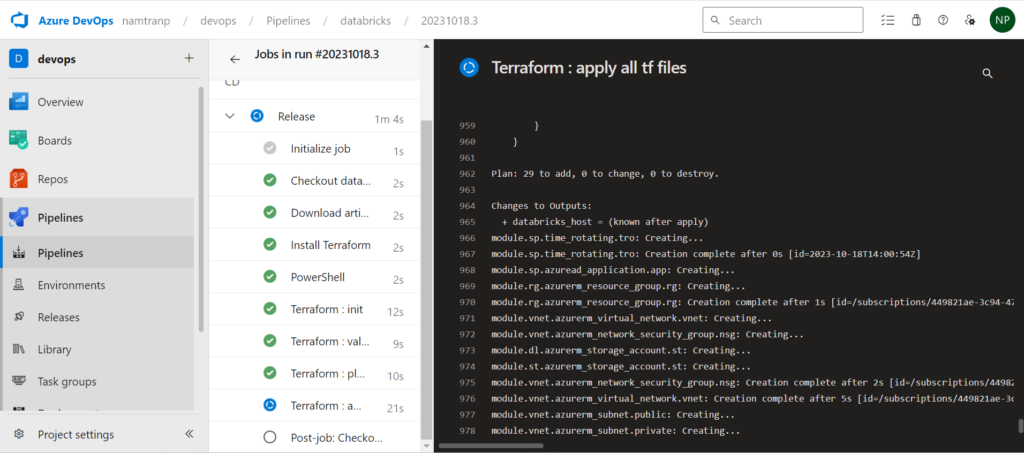 In this guide, I’ll delve into the seamless integration of these two technologies using the Databricks Terraform provider. After that I will create CI/CD by writing YAML files then do the configuration on Azure DevOps. This combination offers several compelling advantages and is the recommended approach for efficiently managing Databricks workspaces and their associated resources in Azure.