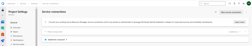 environmentServiceNameAzureRM: 'databricks-nonprod'