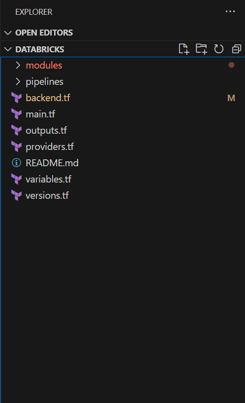 Organize your project into a folder for your Terraform scripts, let’s call it “databricks.” We will create several configuration files to handle authentication and resource provisioning.