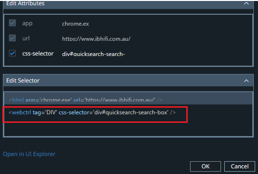 UiPath will automatically detect and capture the element using attributes such as id, name, title, etc.