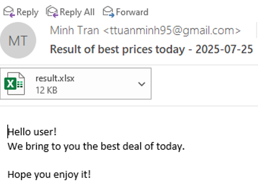 Finally, once we’ve obtained the lowest price, we record it in an Excel file and email it to the user.