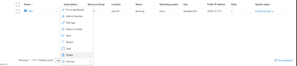 If wanted to delete this VM, then do it from here.