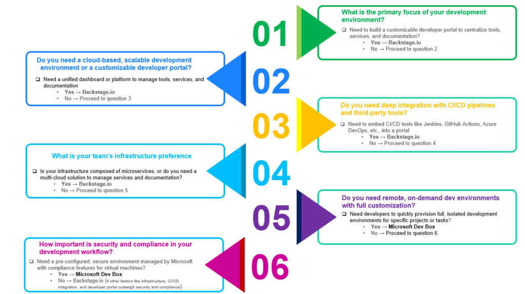 Decision Tree for Choosing Between Backstage.io and Microsoft Dev Box