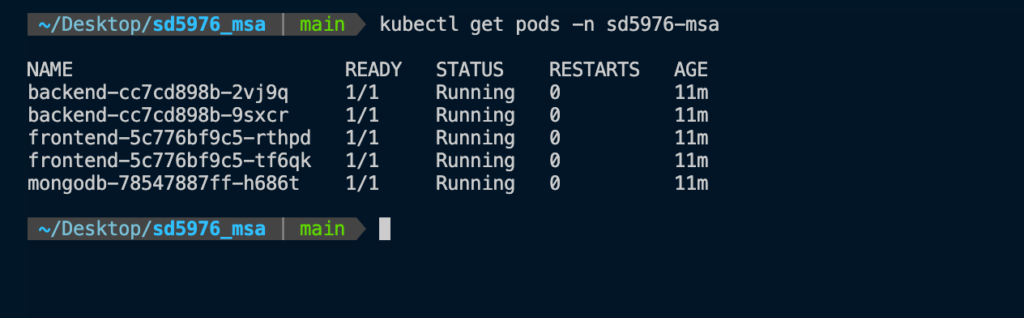 kubectl get pods -n sd5976-msa