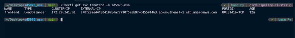 • Deploy Frontend and Backend services to the EKS cluster in the namespace sd5976-msa.