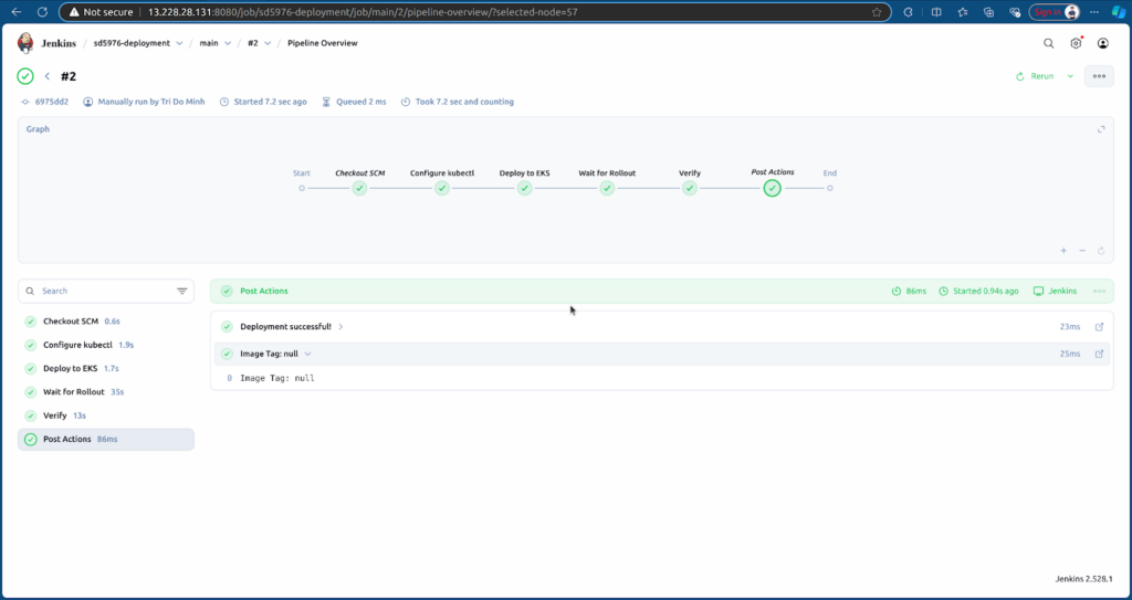 After creating, Jenkins will automatically run the pipeline based on the Jenkinsfile.