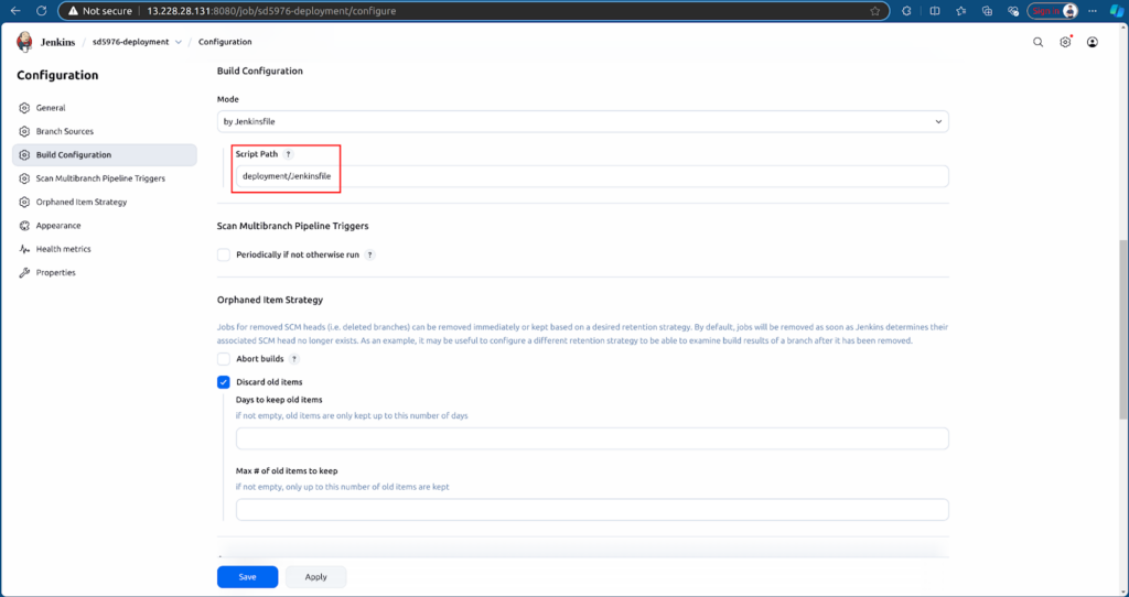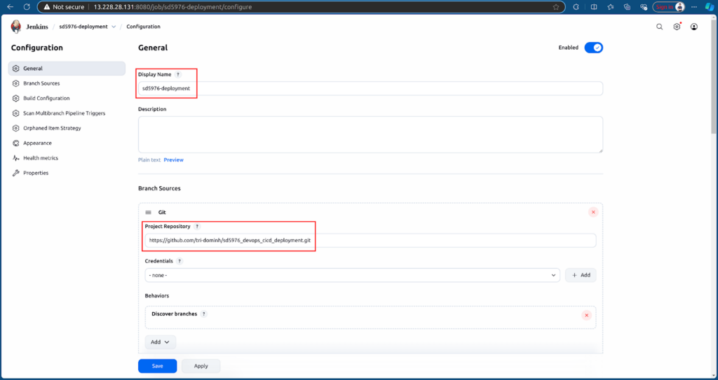 Next, we create a new Multibranch Pipeline job in Jenkins to deploy the application. Refer the deployment repository: sd5976_devops_cicd_deployment/deployment