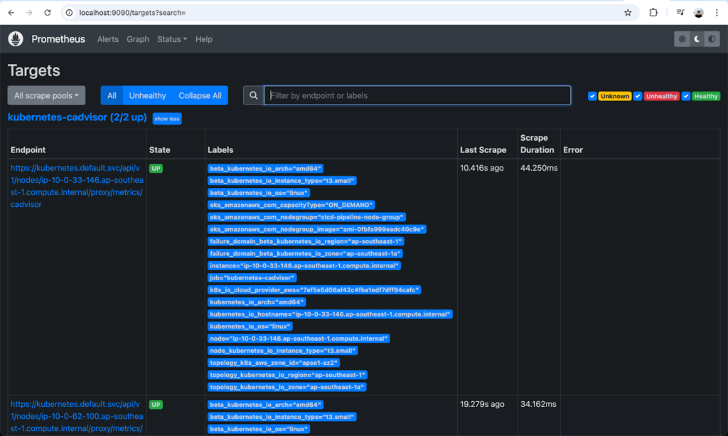 We can monitor Prometheus via http://localhost:9090.