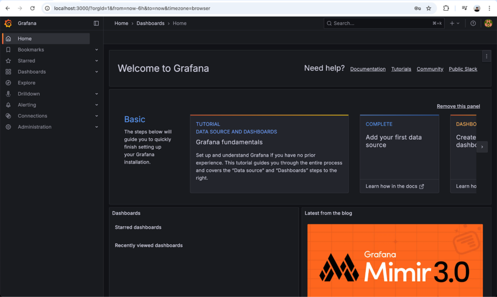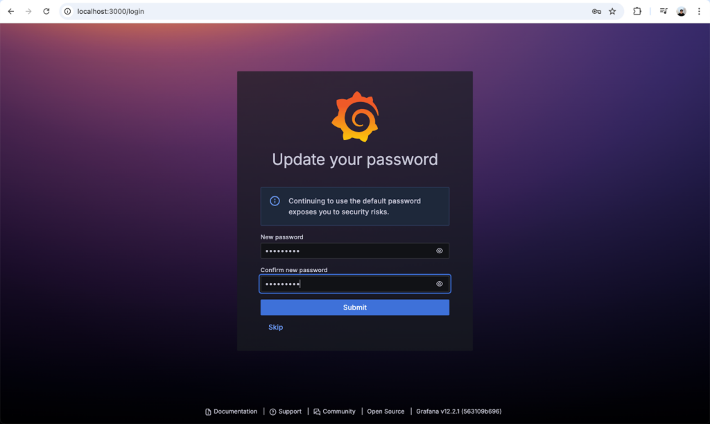 We can access Grafana via http://localhost:3000/login. Login with: