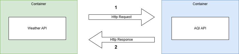 As shown below, we will have 2 microservices. We will use Weather API to get the weather forecast information. This Api communicates with AQI(Air Quality Index) API to get the air quality level.