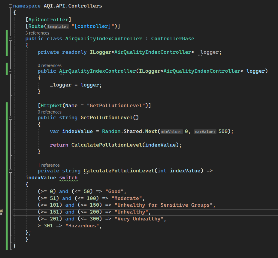 Create a “AirQualityIndexController” Controller in AQI.API project and add the following code