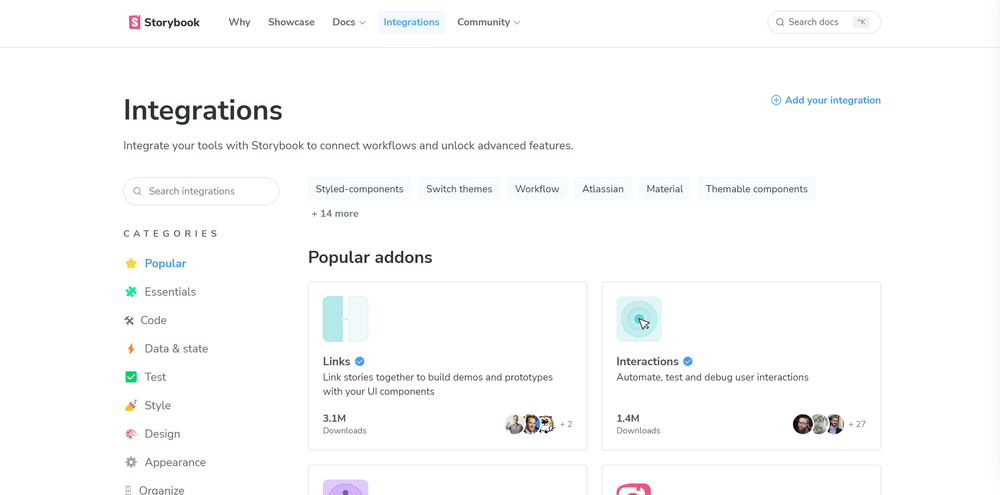 Storybook’s add-ons extend Storybook with features and integrations that are not built into the core. Features like documentation, accessibility testing, and interactive controls are examples of add-ons.