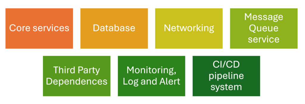 Based on the requirements of our product, we can identify the important components. They include the infrastructure or applications which must always be available like: