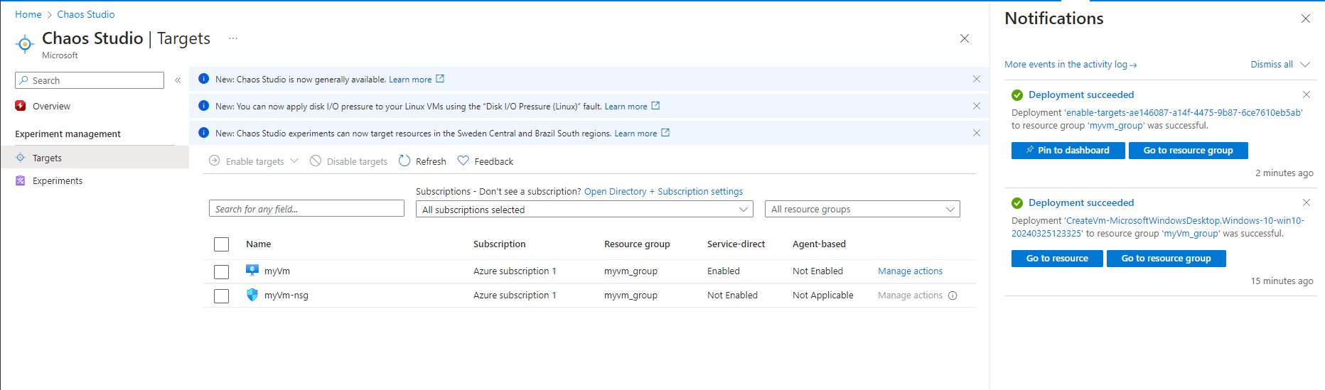2. Enable Chaos Studio on the VM we created