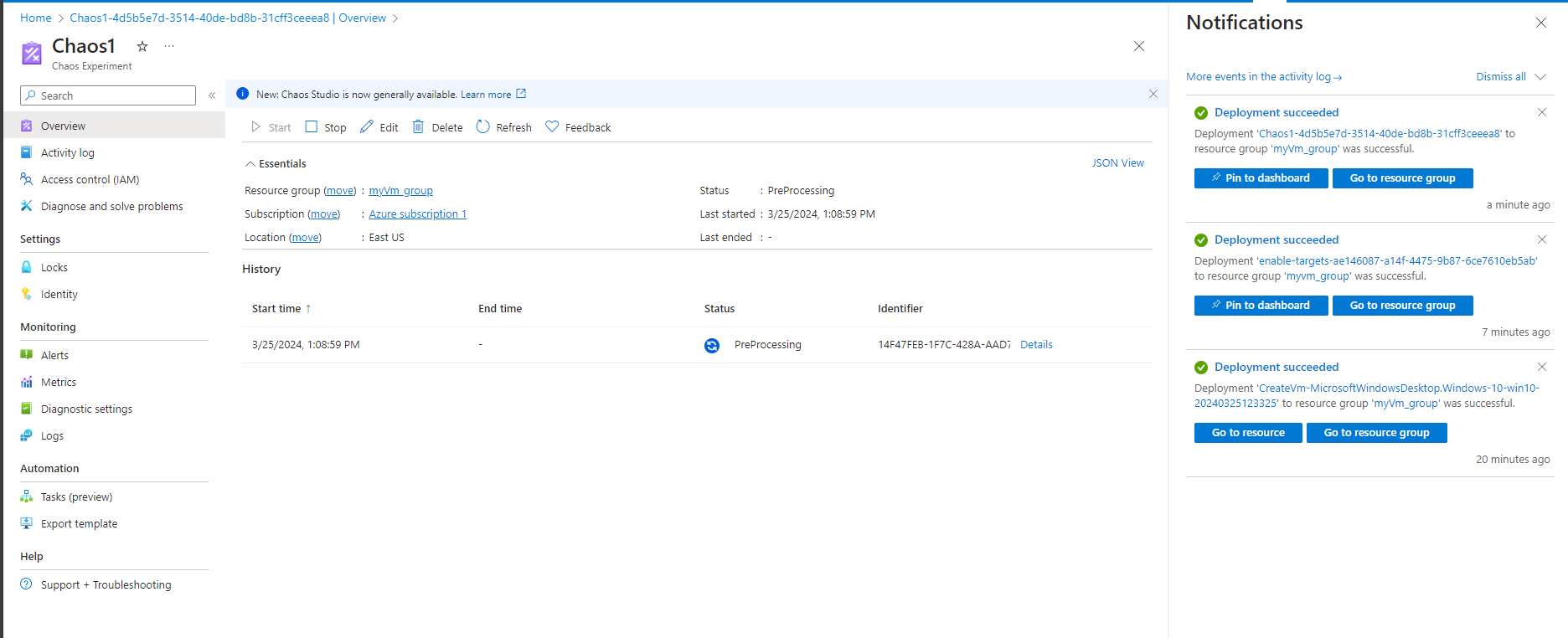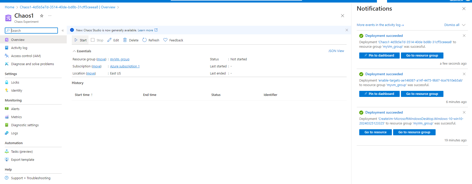 5.2 Select OK to confirm that we want to start the chaos experiment