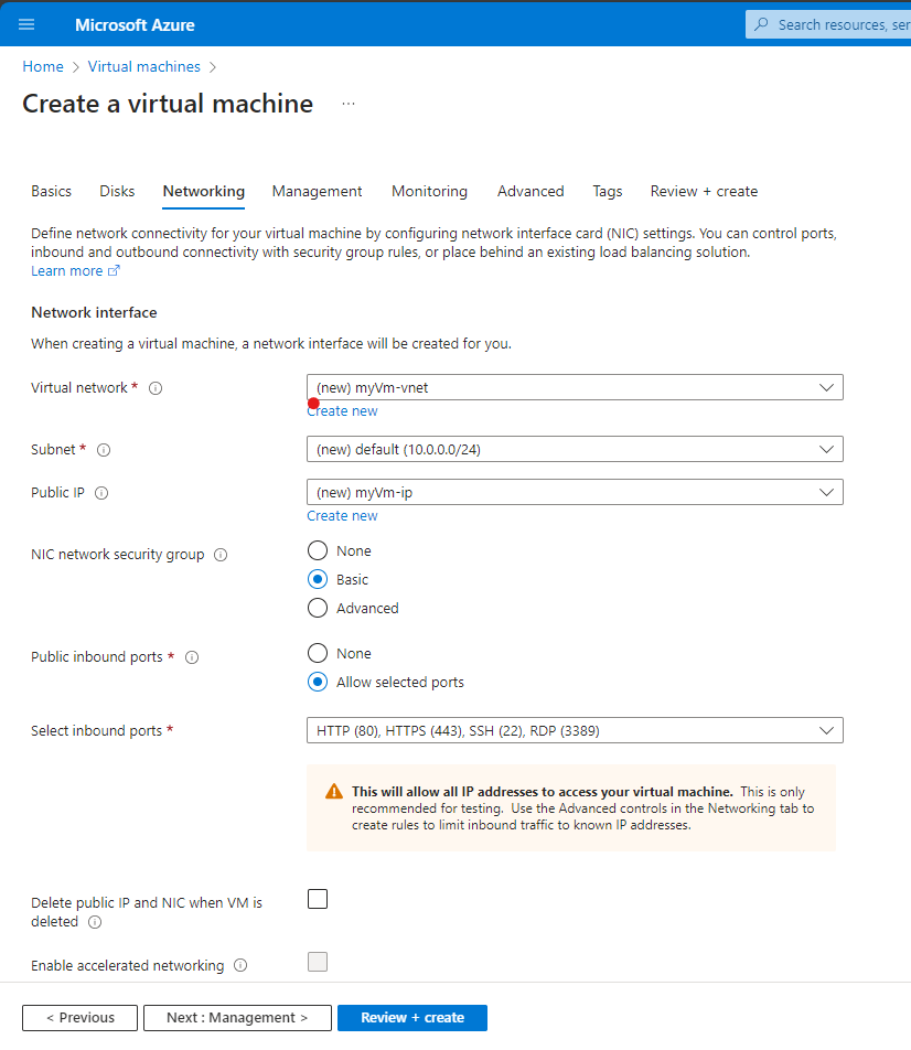 3.8 select Review + create > Create