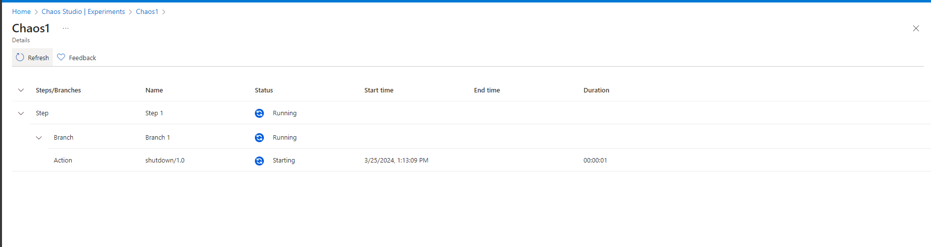 5.3 Select the experiment name to see a detailed view of the execution status of the experiment