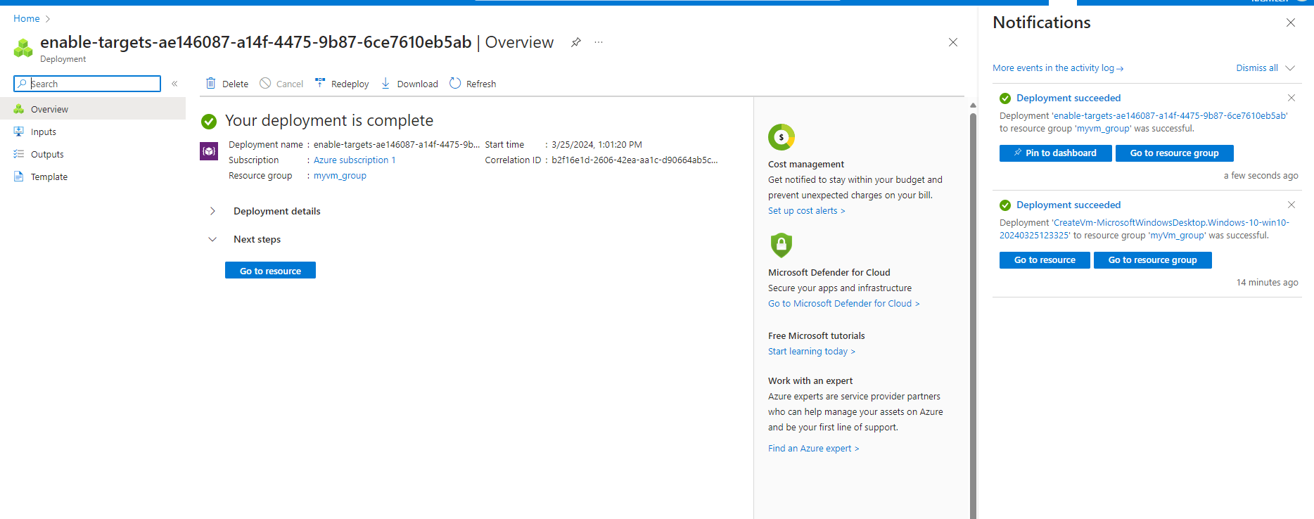 -> After this step, we will receive a notification that our resource has been successfully enabled.