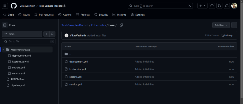 • We need to have a base structure of our kubernetes manifest files in the VCS like here we have Github :