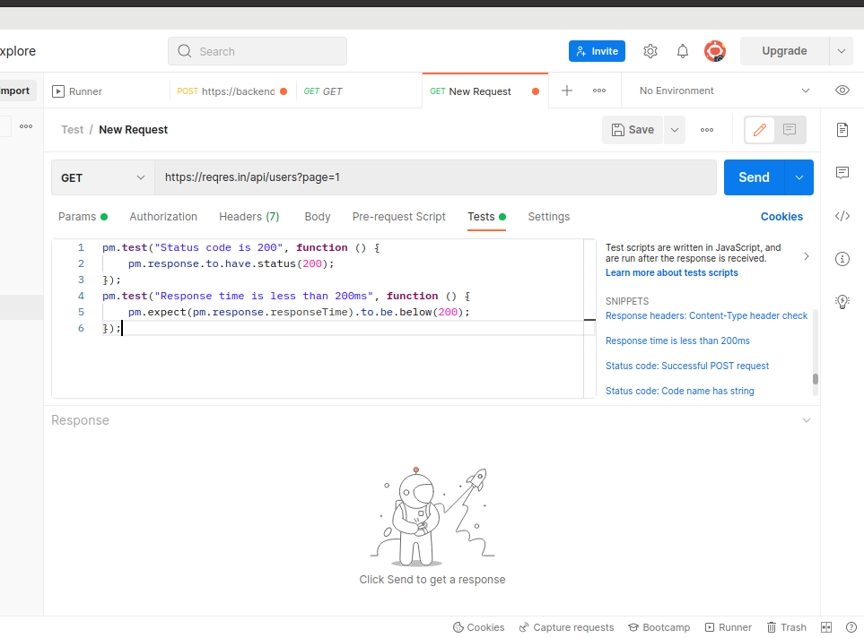 3:- Add multiple assertions under the Tests tab.
