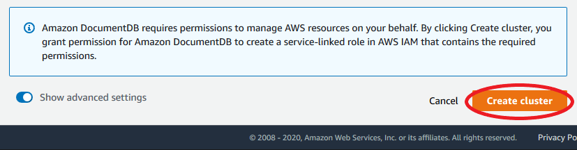 Step 2 : Create an Amazon DocumentDB Cluster