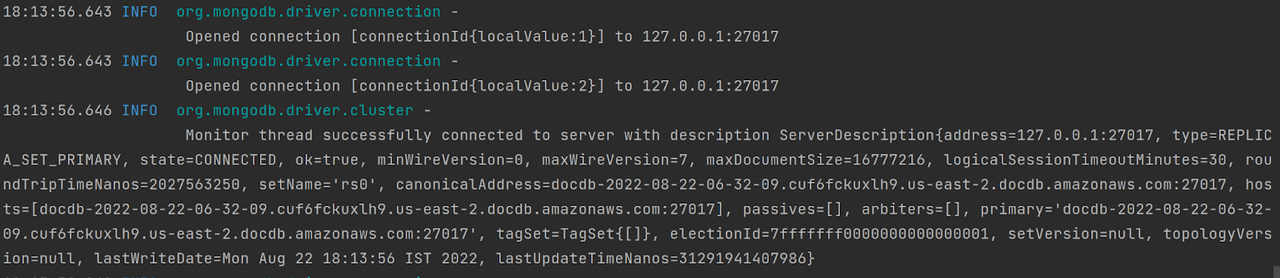 String clusterEndpoint = “127.0.0.1:27017”;