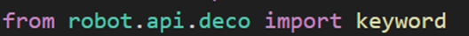 We can import keyword from robot.api.deco package into the python to set the specific name for customized keyword.