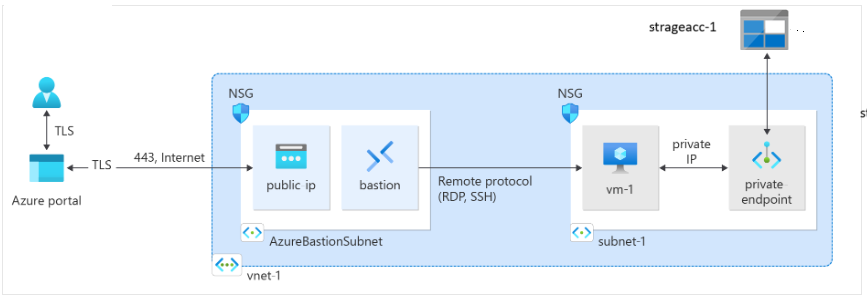 The AzureBastionSubnet: This subnet is designated for the Azure Bastion service, which enables secure connections to Virtual Machines.