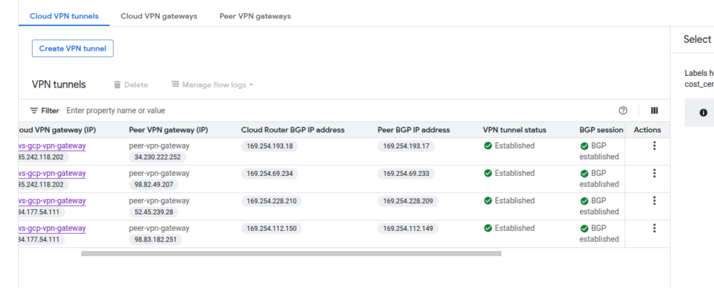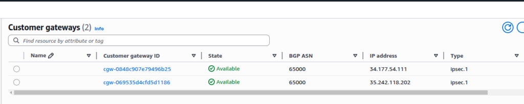 650000and one of the IP addresses from GCP. - Repeat the process for the second IP address to create another Customer Gateway.